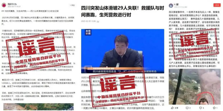 AI造谣带来的负面影响不容小觑。“广州法院对一起某品牌汽车L3级自动驾驶追尾事故作出首例判决”的网络谣言在网上广泛传播,可能会对该品牌的声誉和销售造成严重打击,损害企业利益;四川筠连山体滑坡发生后,多部门协同争分夺秒救援,此时传出“凉山州发生重大山体滑坡灾害”的不实信息,不仅干扰救援节奏,还容易引发当地民众的恐慌,造成社会秩序混乱,此外,当AI生成的虚假信息充斥网络,人们难以辨别真假,对信息的信任度降低,容易产生“狼来了”效应,进而影响社会公信力。